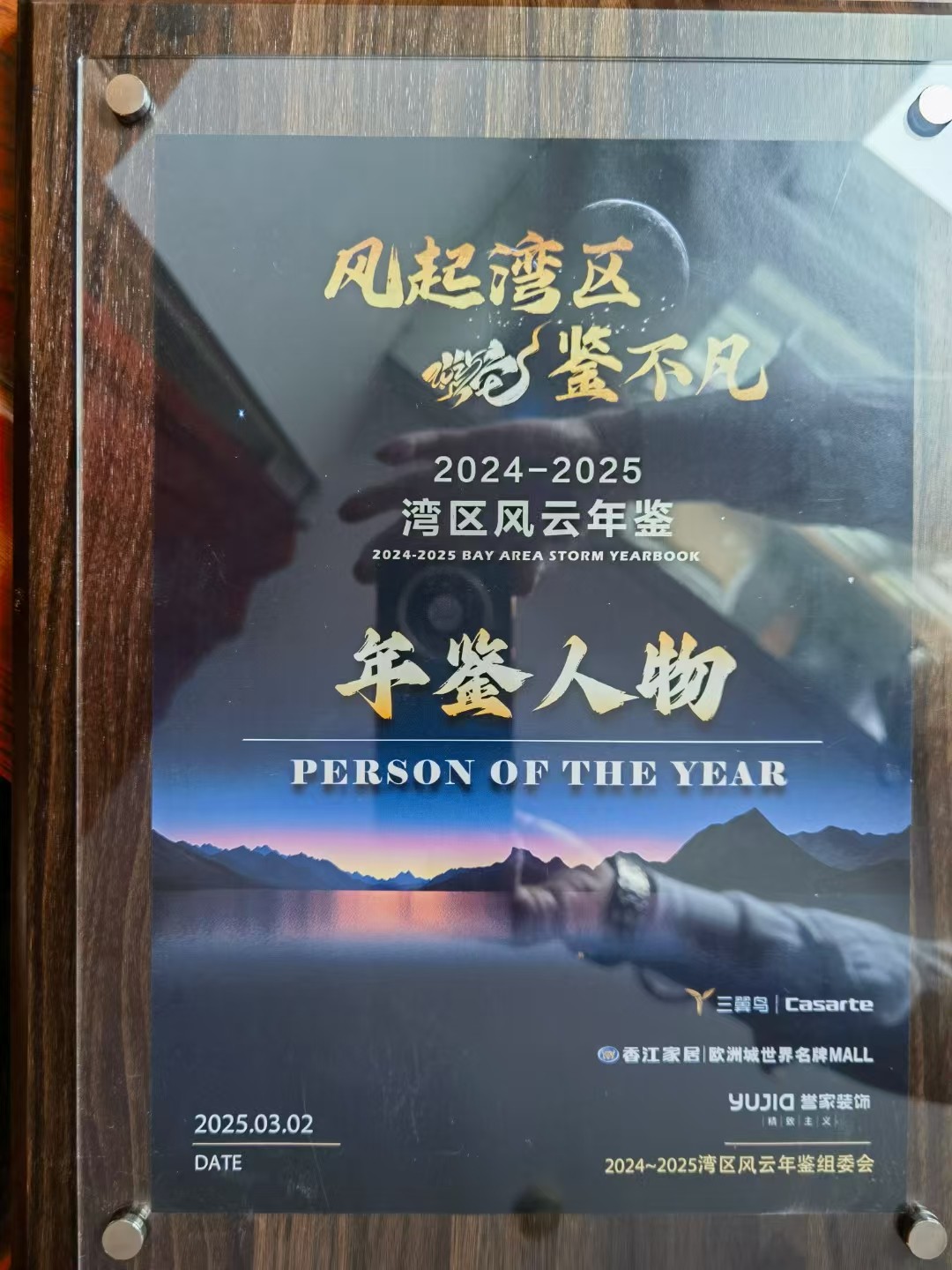 2025 年 3 月 2 日,【風起灣區,鑒不凡】2024-2025 年灣區設計風云年鑒系列活動在深圳盛大啟幕,和邦裝飾創始人劉擁軍受邀出席,憑借在設計領域的深厚積淀與突出貢獻,一舉斬獲 “年鑒人物” 與 “設計人物” 雙項榮譽稱號,成為現場焦點。